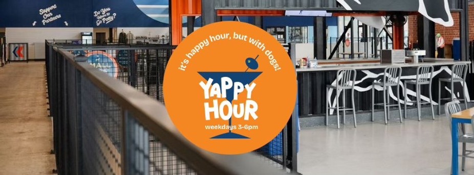 It’s happy hour, but with dogs! Join us weekdays from 3PM-6PM for Yappy Hour! •$1 off wells •$2 off domestic cans Grab a bite from our restaurant while you are here!