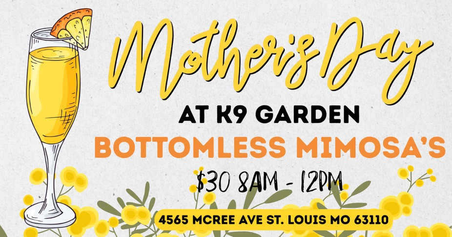 Celebrate Mother’s Day at K9 Garden with brunch, bubbles, and beautiful memories! Join us for $30 bottomless mimosas from 8AM - 12PM, plus brunch served by Picture Perfect Panini during the same time frame! We’ll also have a Photo Booth set up so you can capture the perfect Mother’s Day moment. Bring Mom, bring the pups, and celebrate with us at K9 Garden!